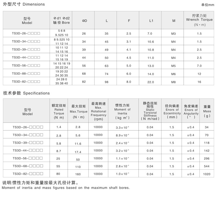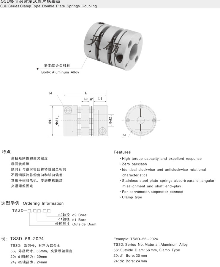TS3D多節(jié)夾緊膜片聯(lián)軸器,精密聯(lián)軸器,天碩聯(lián)軸器官網(wǎng),多節(jié)夾緊螺絲固定式聯(lián)軸器特 點:1.膜片型彈性聯(lián)軸器2.高靈敏度、高扭矩剛性3.零回轉(zhuǎn)間隙4.順時針與逆時針回轉(zhuǎn)特性完全相同5.不